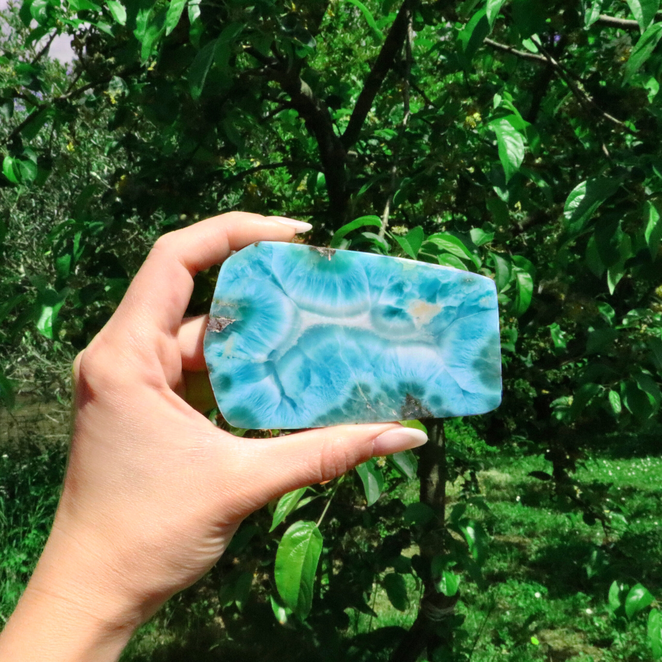 Lastra di Larimar naturale da collezione, 9,6 x 6 x 0,9 cm.